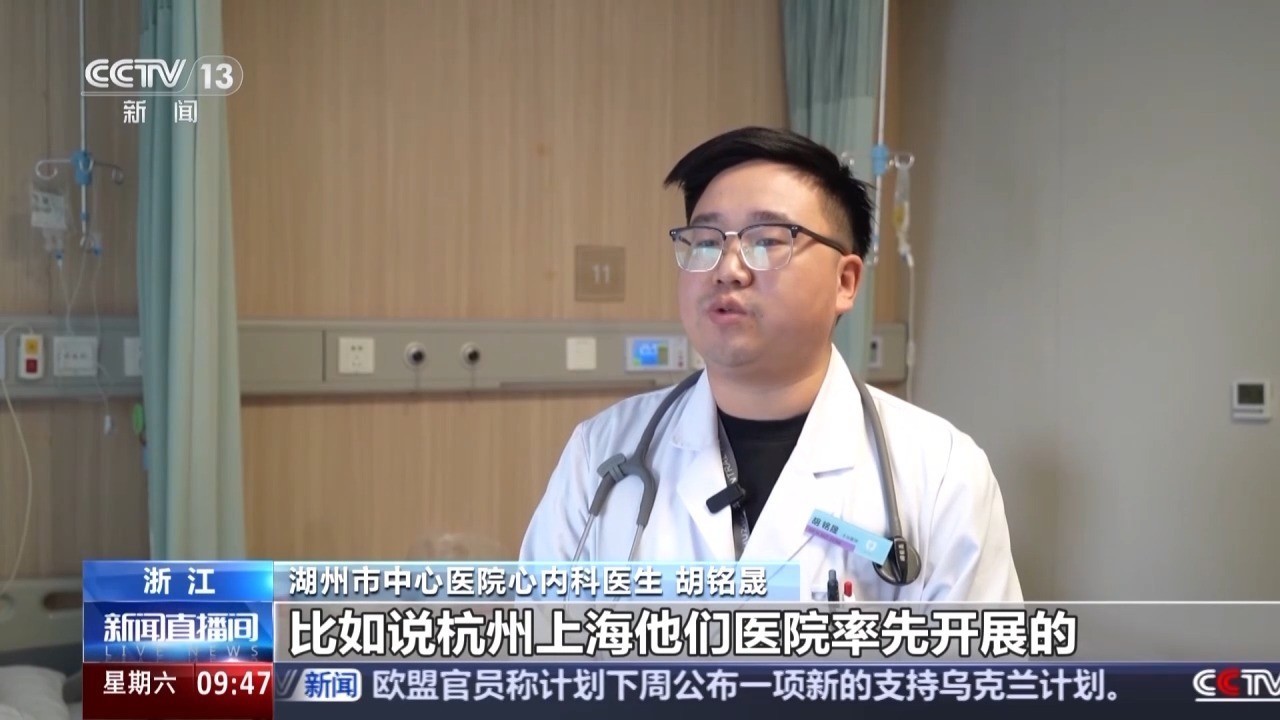 r 湖州市中心医院心内科医生 胡铭晟:这个手术前几年是上级医院比如说杭州上海他们医院率先开展的,然后这几年我们也逐渐开始普遍实施,已作为一个常规手术开展了。 r患者周小娥家属 朱新明:这里主要是方便,技术也很好,手术已经做了三天了,恢复得很好,现在已经可以出院了。 r
